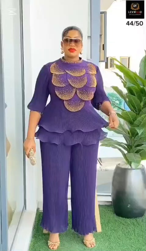 Top is made with Spandex material with beautiful front design. Pant is made of pleated Chiffon material. Care is by hand washing and drying.